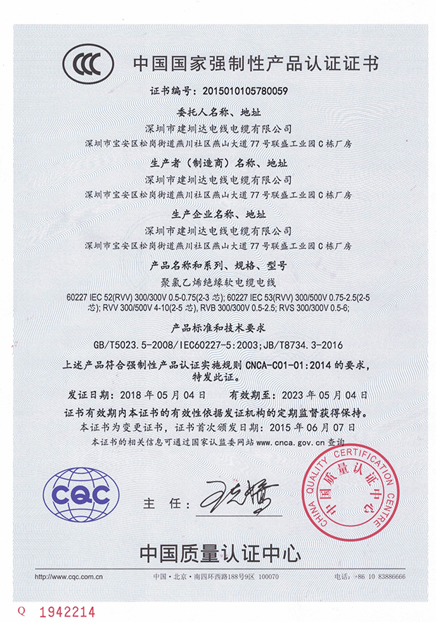 建圳達電纜立足于中國深圳,擁有技術精湛的隊伍、現代化生產設備、精密的檢測儀器,從原材料、生產、成品嚴格按照國家標準檢測,通過多個認證。