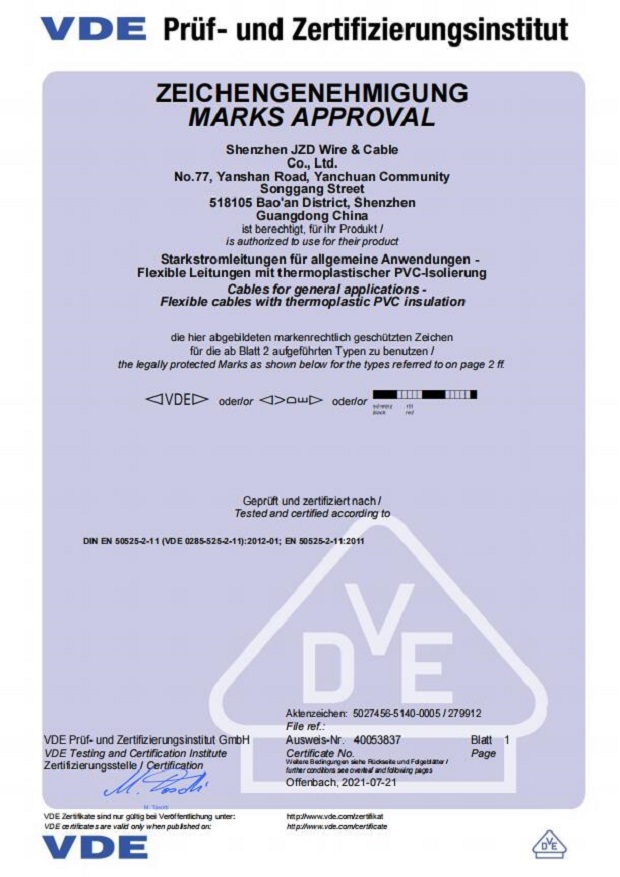 德國VDE電線電纜資質認證20210721
